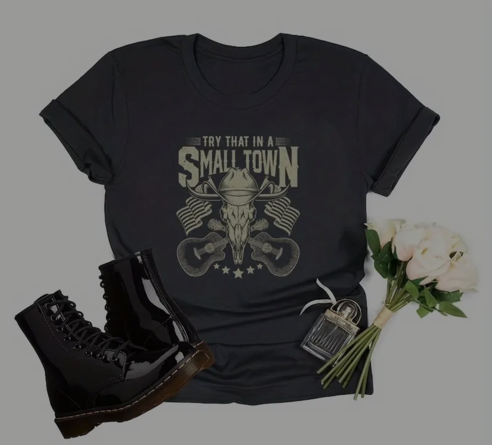 TRY THAT IN A SMALL TOWN COW SKULL T-SHIRT